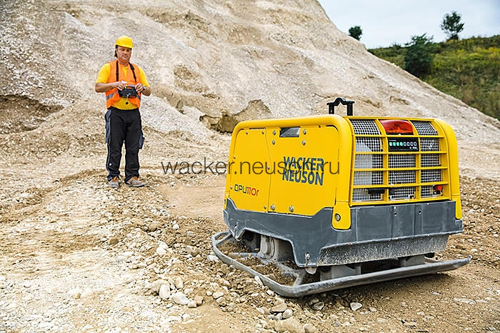 Wacker Neuson DPU 110r дизельная виброплита с инфракрасным управлением обеспечивает максимальную защиту оператора (виброплита мгновенно отключается при потере визуального контакта), оснащена двигателем с жидкостным охлаждением с электростартером и может заменить виброкаток весом 7 тонн. Виброплита Wacker Neuson DPU 110 r, благодаря инновационному методу управления эксцентриком, позволяет чутко управлять без снижения скорости движения. Это обеспечивает максимальную простоту эксплуатации для оператора и позволяет осуществлять точное управление направлением движения. Безопасное расстояние до машины защищает оператора от шума и выхлопных газов. Инфракрасное дистанционное управление обеспечивает оптимальную безопасность. Виброплита мгновенно отключается при потере визуального контакта.