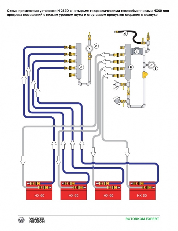 Wacker Neuson HP 252 дизельный промышленный отопитель с гидравлическим контуром передачи тепла обеспечивает сухое тепло с низким уровнем шумом для больших зданий, ангаров, шатров при проведении строительных работ или массовых мероприятий. Отсутствие воздуховодов, имеющих высокий теплопотери, позволяет сэкономить до 50% дизельного топлива по сравнению с традиционными методами обогрева тепловыми пушками непрямого нагрева. Промышленный нагреватель воздуха HP 252D не имеет открытого пламени в обогреваемом пространстве, что обеспечивает дополнительную безопасность в условиях сильного ветра. С аксессуарами, например с системой шлангов, это мобильное устройство также может быть использовано для прогрева бетона, оттаивания грунта и предотвращения промерзания. Дизельный воздухонагреватель прост в эксплуатации и обслуживании. Бортовой многофункциональный шланг удобно расположен для быстрого доступа и хранится внутри на катушке с электрическим приводом для легкого сматывания. Подключение и отключение шлангов производится быстро и легко с помощью быстросъемных соединений.